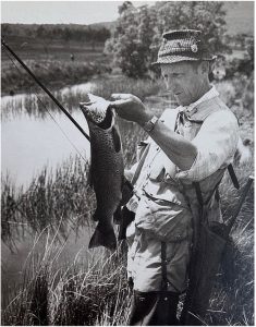 All in all, these are assuredly black days. Quite frequently the trouble begins, as I say, right at the very start when you step from the car. Out of the car you bounce, all eager to get started, and immediately you discover that your polaroids are still where you left them on your desk at home. Already a little annoyed you begin rigging your rod, when either one of two things happens – or even both! Just as you attempt threading the last ring the line slips from your fingers and slides exasperatingly all the way back to the ground. Should this not occur then almost certainly at precisely the same stage of events you find it impossible to thread the last ring because the line has looped round the reel handle. Pull as you like you can never release it; surrender you must and go down to it, by now decidedly more than a little ruffled but still quite able, provided nothing further goes wrong, of cooling off entirely once the fishing begins.